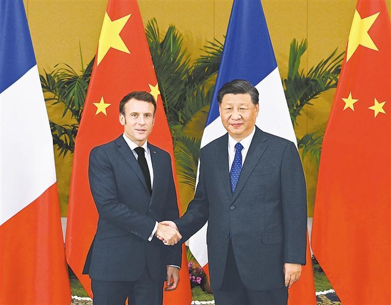 习近平强调,经过多年发展,中欧已经形成强大的经济共生关系。双方应该扩大双向贸易和投资,维护全球产业链供应链稳定畅通,维护国际经贸规则和秩序。希望法方推动欧盟继续奉行独立和积极的对华政策。中方愿同法方一道,支持印尼主席国工作,推动二十国集团巴厘岛峰会取得成功,加强在应对气候变化、生物多样性保护等方面沟通协作,共同维护真正的多边主义,应对粮食安全、能源安全等全球性挑战,破解可持续发展难题。