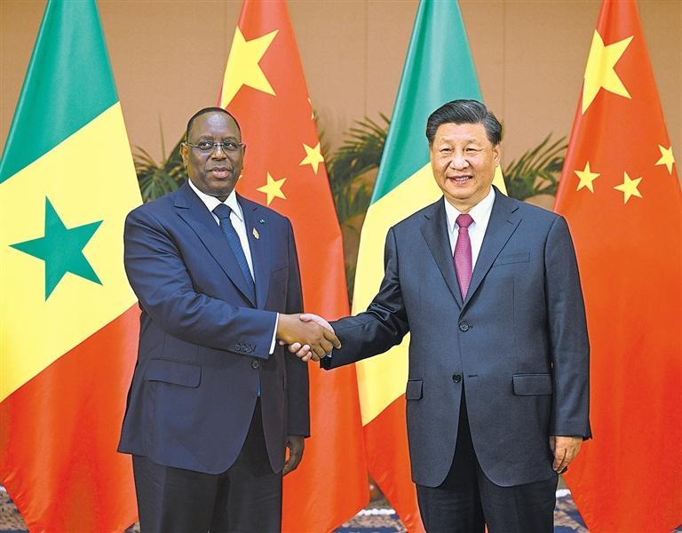 习近平强调,中方愿同塞方继续在发展振兴道路上携手前行,在涉及彼此主权、安全、发展利益问题上相互支持。中方愿继续支持塞内加尔公路、工业园等基础设施建设,扩大塞内加尔农产品输华,加强花生全产业链和水稻种植合作,落实好中非合作论坛各项举措。中塞在维护世界和平、促进共同发展等重大问题上立场高度一致。中方愿同塞方团结协作,共同维护国际公平正义和广大发展中国家共同利益。中方积极支持非盟加入二十国集团倡议。
