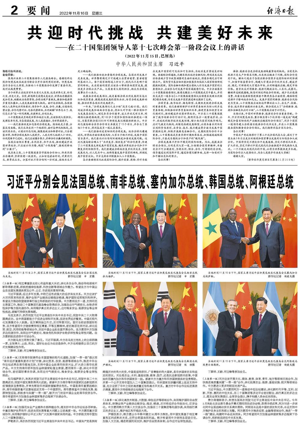 本报印度尼西亚巴厘岛11月15日讯(记者陈小方)当地时间11月15日下午,国家主席习近平在巴厘岛会见塞内加尔总统萨勒。