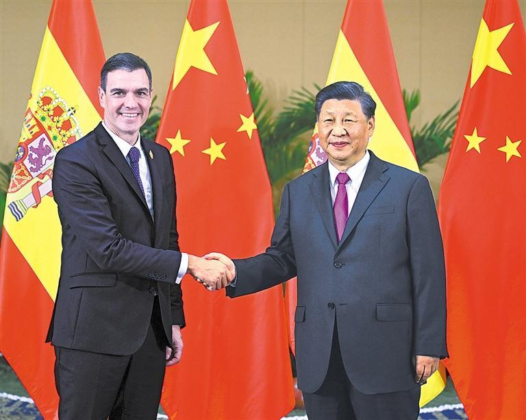习近平强调,两国高层要保持经常性沟通,加强顶层设计和政治引领,巩固互信。双方要在事关彼此主权、安全、发展、尊严等核心利益问题上相互理解、相互支持。要筹备好中西文化和旅游年,让中西友好深入人心。大力推进务实合作,欢迎更多西班牙企业和商品进入中国市场,希望西方给予中国企业公平、公正、透明、非歧视的市场待遇。中方愿同西班牙加强在二十国集团等多边平台沟通协作,共同应对气候变化、能源粮食安全等挑战。希望西班牙为推动中欧关系健康稳定发展发挥积极作用。