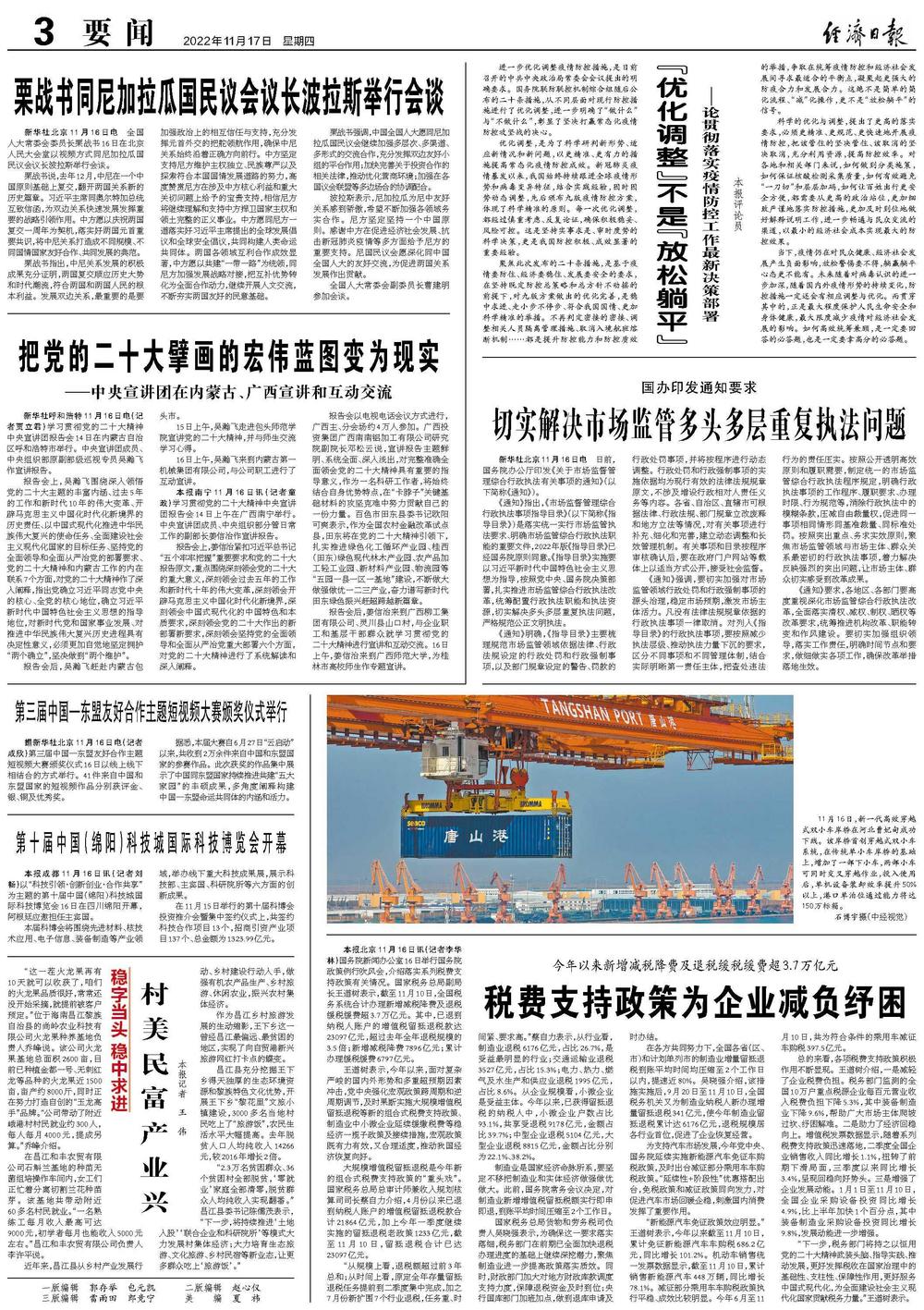 聚焦此次发布的二十条措施,是基于疫情要防住、经济要稳住、发展要安全的要求,在坚持既定防控总策略和总方针不动摇的前提下,对九版方案做出的优化完善,是稳中求进、走小步不停步、符合我国国情、更加科学精准的举措。不再判定密接的密接、调整相关人员隔离管理措施、取消入境航班熔断机制……都是提升防控能力和防控质效的举措,争取在统筹疫情防控和经济社会发展间寻求最适合的平衡点,凝聚起更强大的防疫合力和发展合力。这绝不是简单的简化流程、“减”化操作,更不是“放松躺平”的信号。