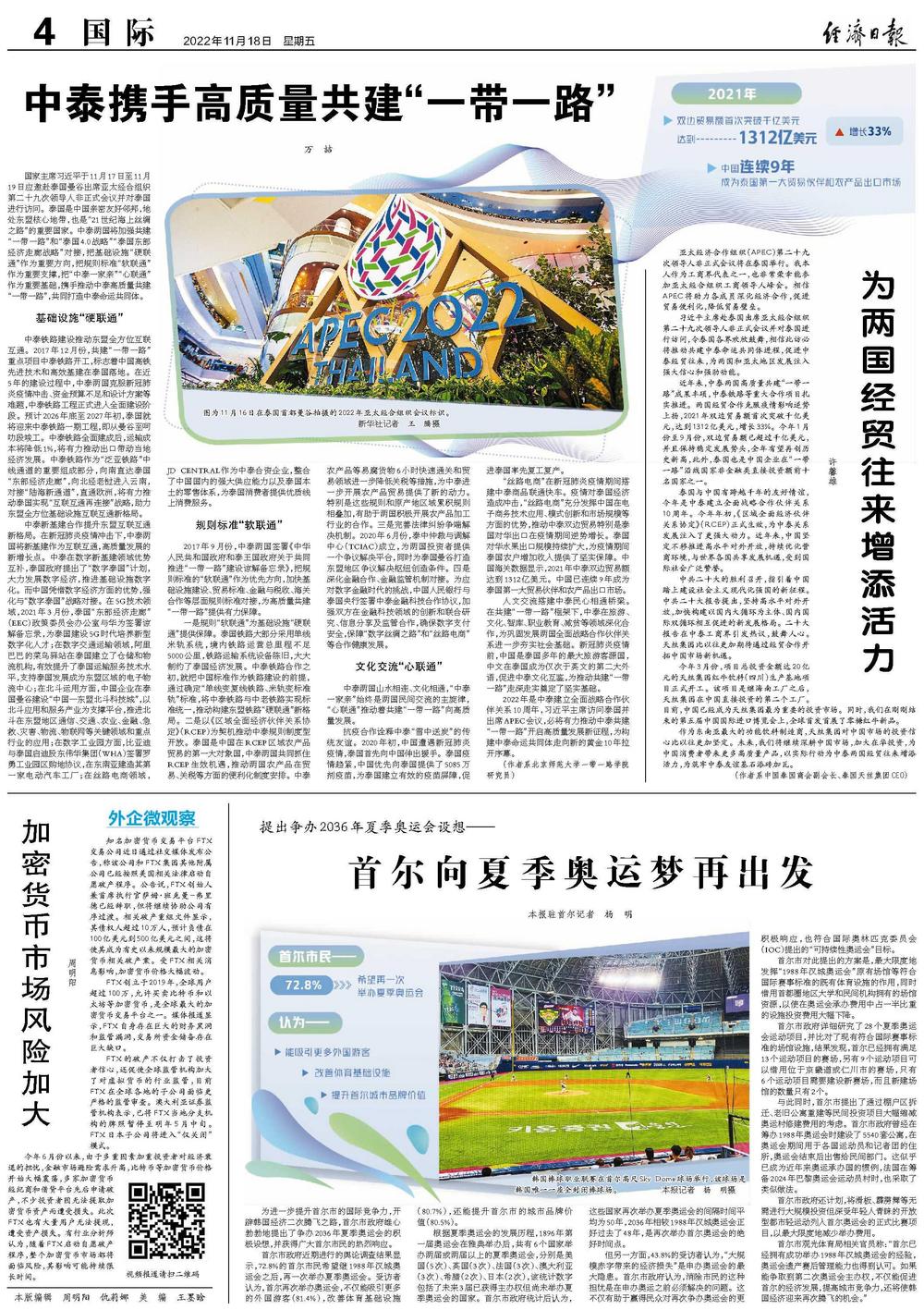 2022年是中泰建立全面战略合作伙伴关系10周年,习近平主席访问泰国并出席APEC会议,必将有力推动中泰共建“一带一路”开启高质量发展新征程,为构建中泰命运共同体走向新的黄金10年拉开序幕。