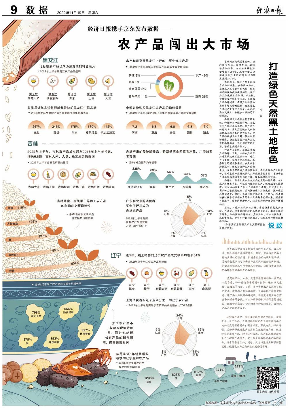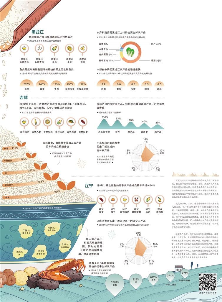 寒地黑土、绿色天然是东北农产品的底色。在全国市场中,东北农产品有着明显优势,但是仍面临着品类结构不均衡,农产品品牌建设有待加强,产业链、价值链有待完善等问题。东北农产品品牌建设,是将产业优势转变成市场优势的过程,也是将农产品的产量变现为价值,从而提高农民收入、推进乡村振兴的有效举措。