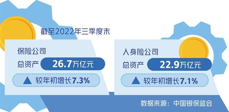 11月15日,中国银保监会公布了三季度保险业主要监管指标数据。截至2022年三季度末,保险公司总资产26.7万亿元,较年初增加1.8万亿元,增长7.3%。其中,人身险公司总资产22.9万亿元,较年初增长7.1%。