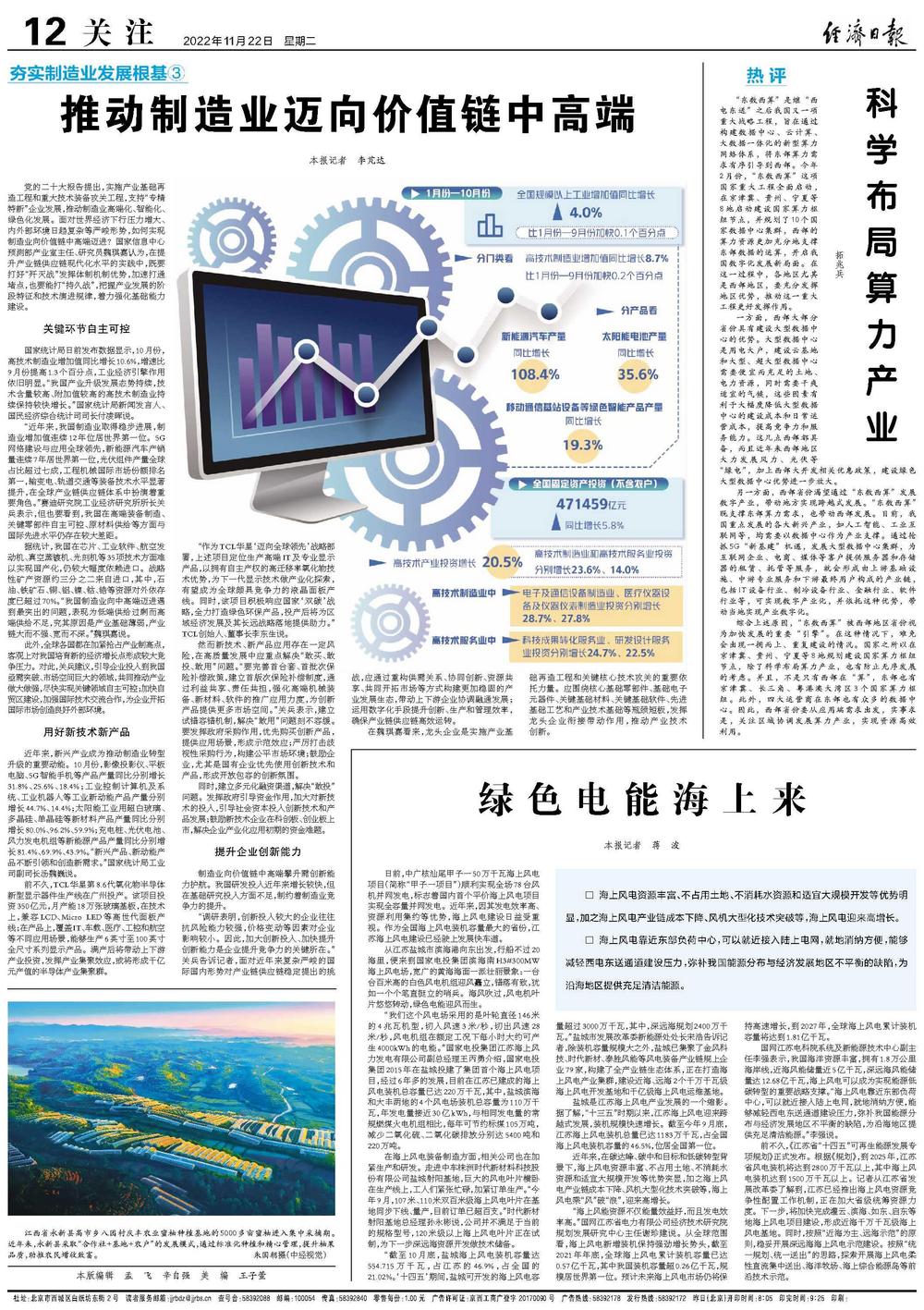 党的二十大报告提出,实施产业基础再造工程和重大技术装备攻关工程,支持“专精特新”企业发展,推动制造业高端化、智能化、绿色化发展。面对世界经济下行压力增大、内外部环境日趋复杂等严峻形势,如何实现制造业向价值链中高端迈进?国家信息中心预测部产业室主任、研究员魏琪嘉认为,在提升产业链供应链现代化水平的实践中,既要打好“歼灭战”发挥体制机制优势,加速打通堵点,也要能打“持久战”,把握产业发展的阶段特征和技术演进规律,着力强化基础能力建设。