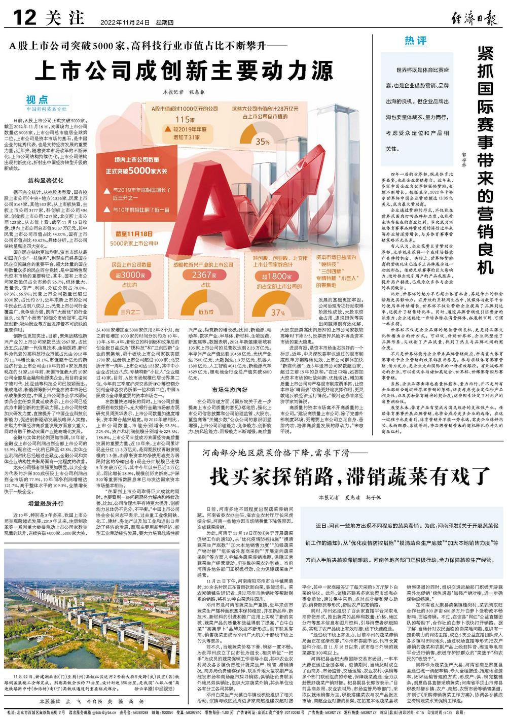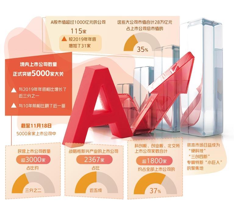 日前,A股上市公司正式突破5000家。截至2022年11月16日,我国境内上市公司数量达5003家,上市公司总市值居全球第二位。上市公司是资本市场的基石,是中国企业的优秀代表,也是支持经济发展的重要力量。近年来,随着资本市场改革的不断深化,上市公司结构持续优化。上市公司结构出现的新变化,折射出中国经济转型升级的新成效。