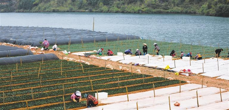 11月22日,村民在贵州省锦屏县三江镇卦治村茶苗培育基地扦插茶苗。