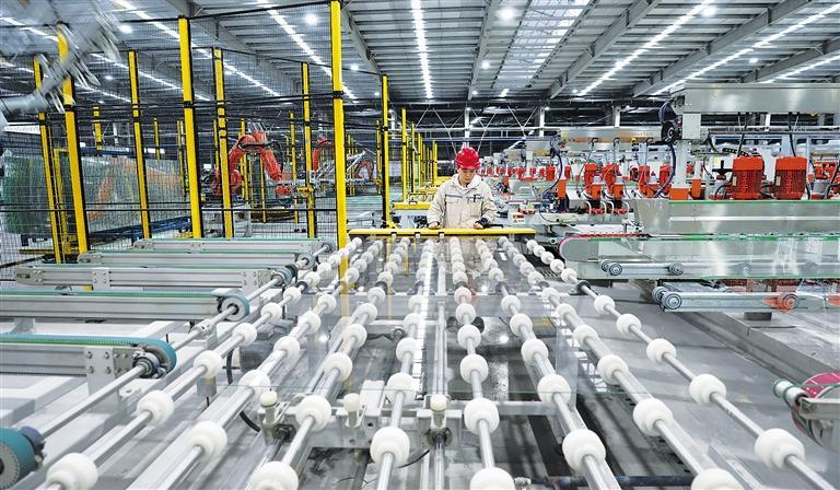 11月22日,湖南省资兴经济开发区旗滨医药材料科技有限公司的工人在中性硼硅药用玻璃素管生产线上作业。近年来,资兴市依托硅石矿源优势,推动硅材料产业集聚集群发展,致力于打造硅材料“百亿产业”。李 科摄(中经视觉)