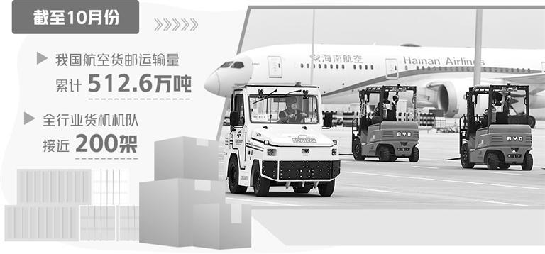中国民航科学技术研究院副研究员占芬向记者表示,今年以来,我国航空货运量稳步增长。截至10月份,我国航空货邮运输量累计512.6万吨,恢复到2019年同期的83.9%,航空货运依旧是航空公司重要的盈利业务。航空货运运力供给充足,全行业货机机队接近200架。