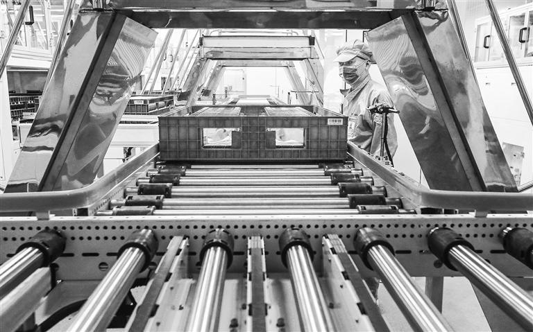 ▼12月1日,安徽省马鞍山经开区的蜂巢动力锂离子电池项目基地,员工在生产新能源汽车动力电池。近年来,该市围绕新兴产业开展补链固链强链,打造具有影响力的新兴产业聚集地。