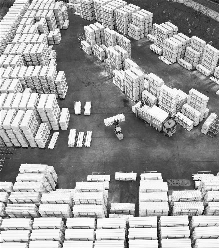 ◀11月30日,位于四川省内江东兴经济开发区的四川鸿宇恒创塑料制品有限责任公司,工人在装运高分子聚氯乙烯管材。连日来,当地各企业抢时间、抓进度、赶订单。