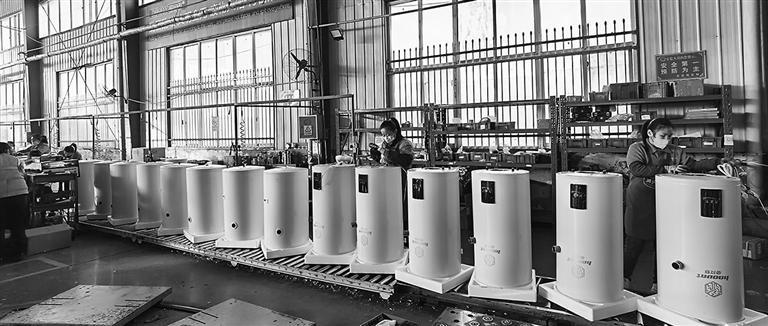 12月2日,山东聊城茌平区振兴街道毫瓦特新能源公司,工人在搪瓷储热水箱总装车间工作。近年来,当地通过“强党建、兴产业、促振兴”,助力乡村振兴。孙小飞摄(中经视觉)