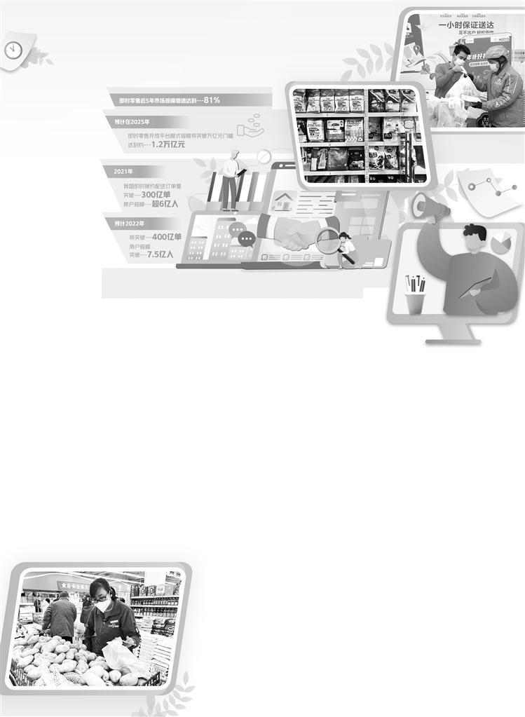 中国连锁经营协会11月发布的《2022年中国即时零售发展报告》显示,即时零售近5年市场规模增速达到81%。预计在2025年,即时零售开放平台模式规模将突破万亿元门槛,达到约1.2万亿元。报告认为,随着消费观念的转变,消费者对即时零售的接纳度越来越高,即时消费场景不断延伸,从“日常买”“应急买”到“大促买”“尝鲜买”“送礼买”,消费者诉求日趋多样。