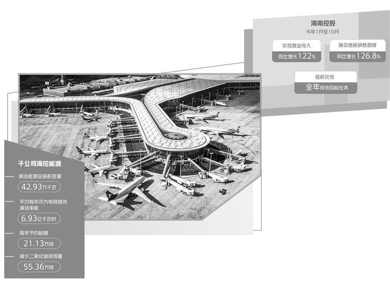 “近年来,海南省发展控股有限公司(以下简称‘海南控股’)深耕自贸港沃土,不断深化国企改革,推动机场建设运营、区域综合开发、免税消费、新能源等多项产业高质量发展,已成长为资产超千亿元的省属国有企业,朝着‘进军中国企业500强、打造百年老店’的目标迈进。”海南控股党委书记、董事长周军平说。今年1月至10月,海南控股实现营业收入同比增长122%,提前完成全年投资目标任务。