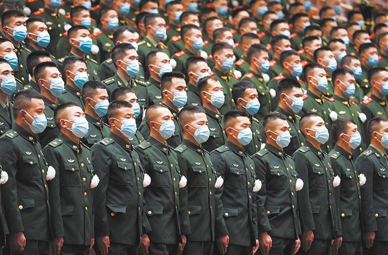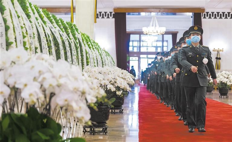 这是出席追悼大会的解放军代表步入人民大会堂大礼堂。