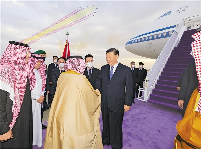 本报利雅得12月7日讯(记者罗怀伟、王俊鹏)当地时间12月7日下午,国家主席习近平乘专机抵达利雅得,应沙特阿拉伯王国国王萨勒曼邀请,出席首届中国—阿拉伯国家峰会、中国—海湾阿拉伯国家合作委员会峰会并对沙特进行国事访问。