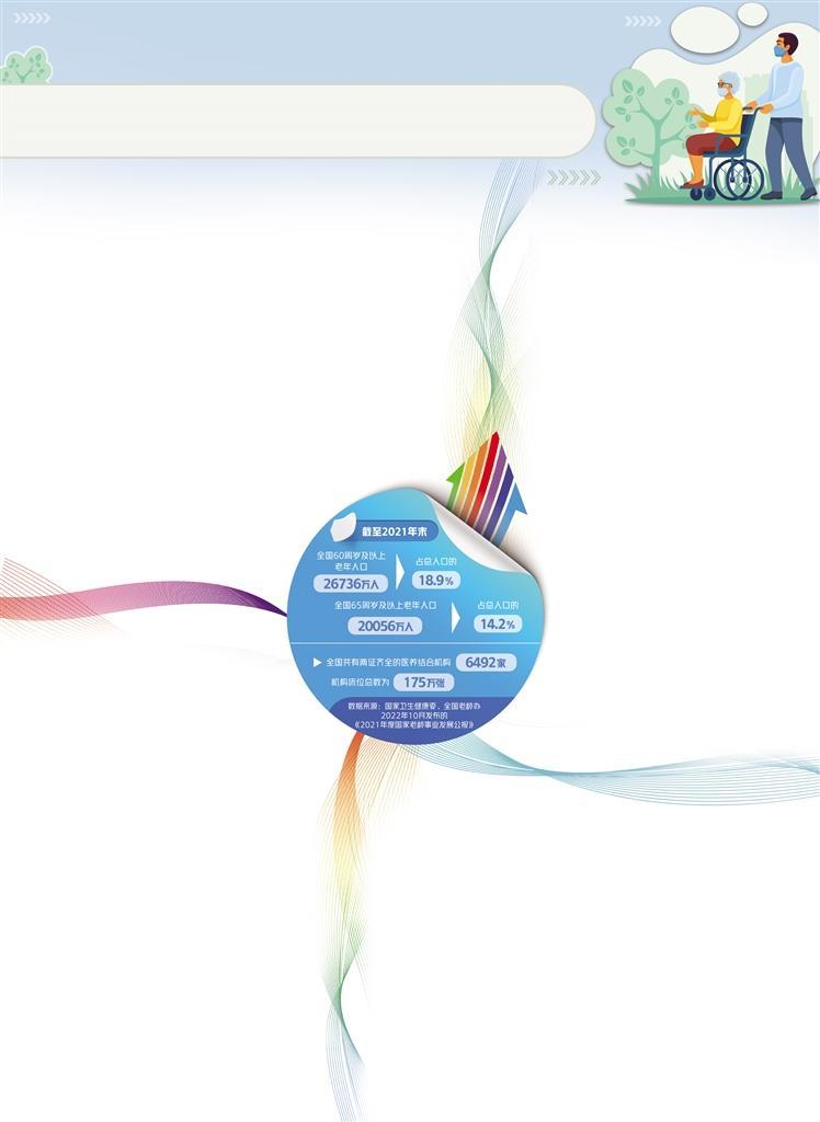 二是居家社区医养结合服务有效提升。自2019年起,将医养结合纳入国家基本公共卫生服务项目,每年对辖区内65岁及以上的老年人进行两次医养结合服务,优先为老年人提供家庭医生签约服务,鼓励各级各类医疗机构依法规范为老年重点人群提供多种居家医疗服务。2021年,全国共为1.2亿65岁及以上老年人提供健康管理。今年3月,国家卫生健康委等9部门联合印发《关于开展社区医养结合能力提升行动的通知》,提出提升居家社区医养结合服务能力。结合《“十四五”积极应对人口老龄化工程和托育建设实施方案》明确的支持方向和“十四五”规划纲要102项重大工程有关项目实施,今年以来,已指导吉林、安徽、江西、湖南等地申请中央预算内投资,支持依托基层医疗卫生资源建设医养结合项目。例如广东省佛山市均安镇依托社区卫生服务站建设医养结合服务中心,盘活基层医疗卫生机构设施、人力等资源,融合医疗、康复、护理、养老等服务,为老年人在家门口提供便利可及的医养结合服务。