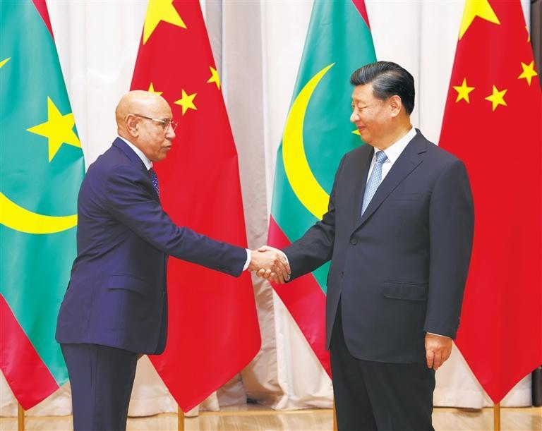 习近平强调,多年来,中方帮助毛方实施道路、桥梁、医院等惠及民生的重大项目。中方将继续鼓励中国企业积极参与毛方能源、渔业、矿业、基础设施等领域建设,造福毛里塔尼亚人民。中方对阿拉伯等发展中国家保持着不变的初心,愿同包括毛里塔尼亚在内的阿拉伯国家一道,全力构建面向新时代的中阿命运共同体,携手开创中阿关系发展新未来。毛方也是中非集体合作的重要见证者、参与者、贡献者,中方愿同毛方一道共建新时代中非命运共同体。