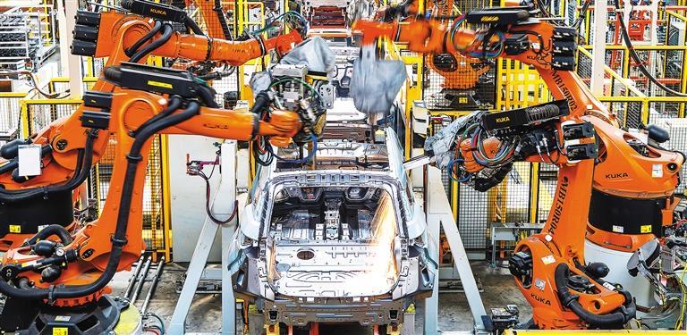 ◀南昌县小蓝经开区江铃富山工厂,机器人正在进行自动焊接。南昌市加快建设先进制造业集聚发展中心,都市圈内汽车制造产业已达到千亿元级规模。
