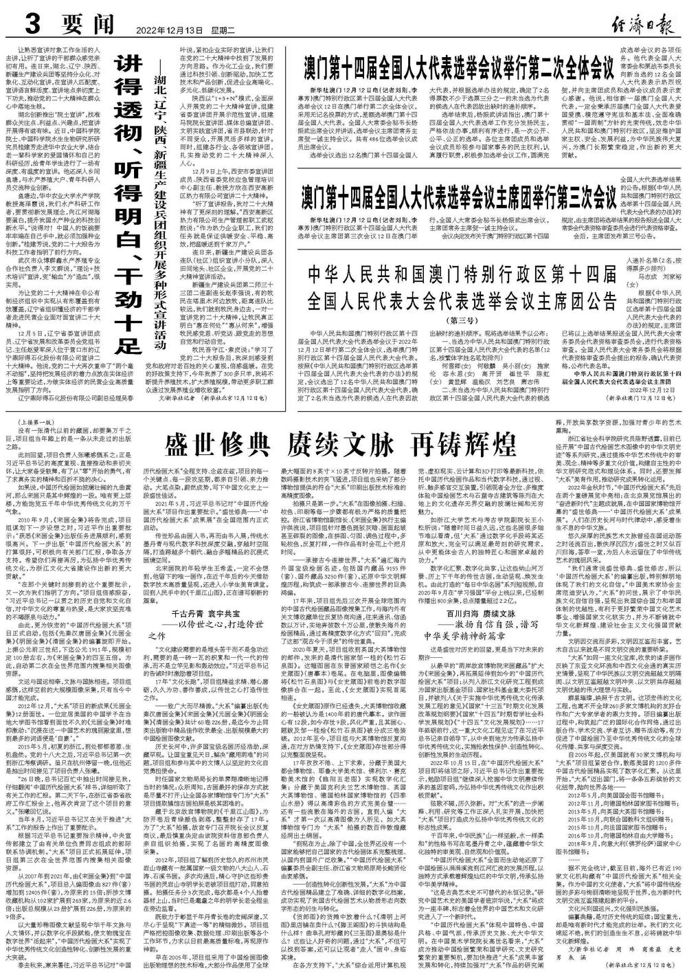 中华人民共和国澳门特别行政区第十四届全国人民代表大会代表选举会议于2022年12月12日举行第二次全体会议,选举澳门特别行政区第十四届全国人民代表大会代表。按照《中华人民共和国澳门特别行政区选举第十四届全国人民代表大会代表的办法》的规定,会议选出了12名中华人民共和国澳门特别行政区第十四届全国人民代表大会代表,确定了2名未当选为代表的候选人在代表因故出缺时的递补顺序。现将选举结果予以公布: