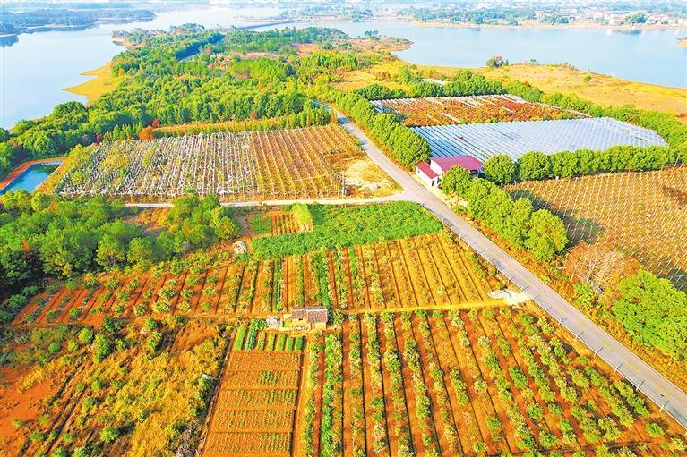 近日,江西鹰潭余江区五湖水库水土流失治理项目基地,成片的油茶林进入盛花期,柑橘树结满了果实。近年来,当地将治理水土流失与发展乡村经济相结合,鼓励种植经济林,昔日水土流失严重的黄土地变成了如今的“花果山”。严米金摄(中经视觉)