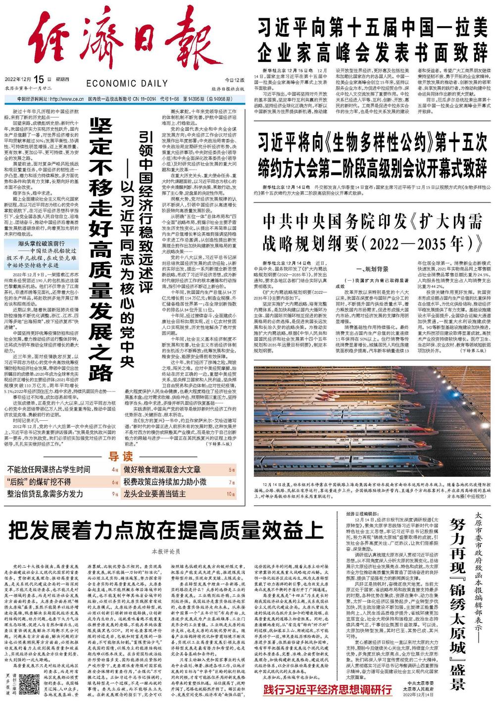 新华社北京12月14日电 近日,中共中央、国务院印发了《扩大内需战略规划纲要(2022—2035年)》,并发出通知,要求各地区各部门结合实际认真贯彻落实。