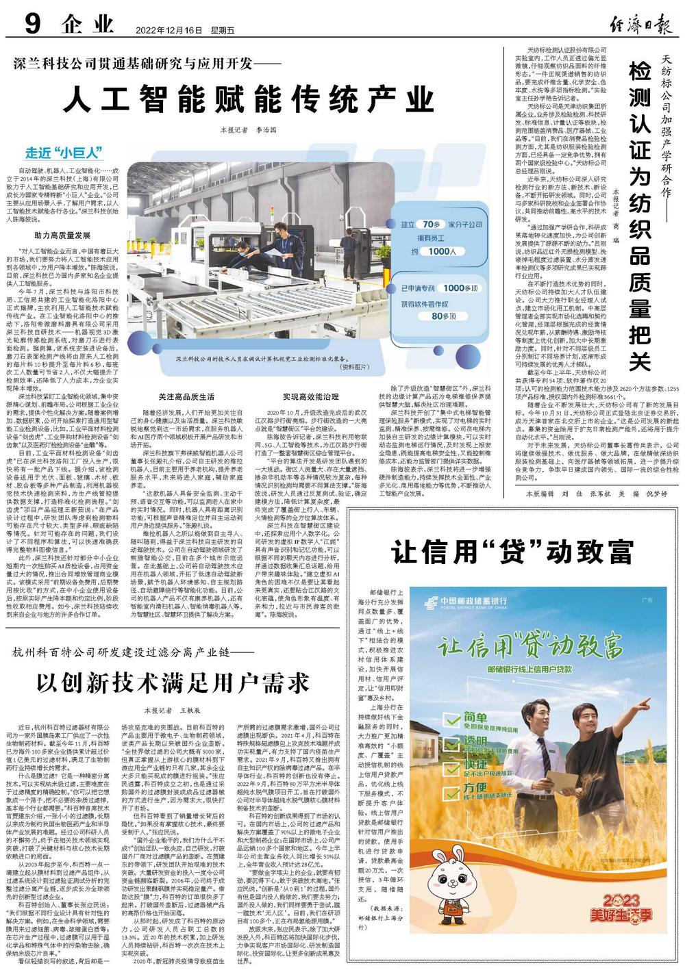自动驾驶、机器人、工业智能化……成立于2014年的深兰科技(上海)有限公司致力于人工智能基础研究和应用开发,已成长为国家专精特新“小巨人”企业。“公司主要从应用场景入手,了解用户需求,以人工智能技术赋能各行各业。”深兰科技创始人陈海波说。