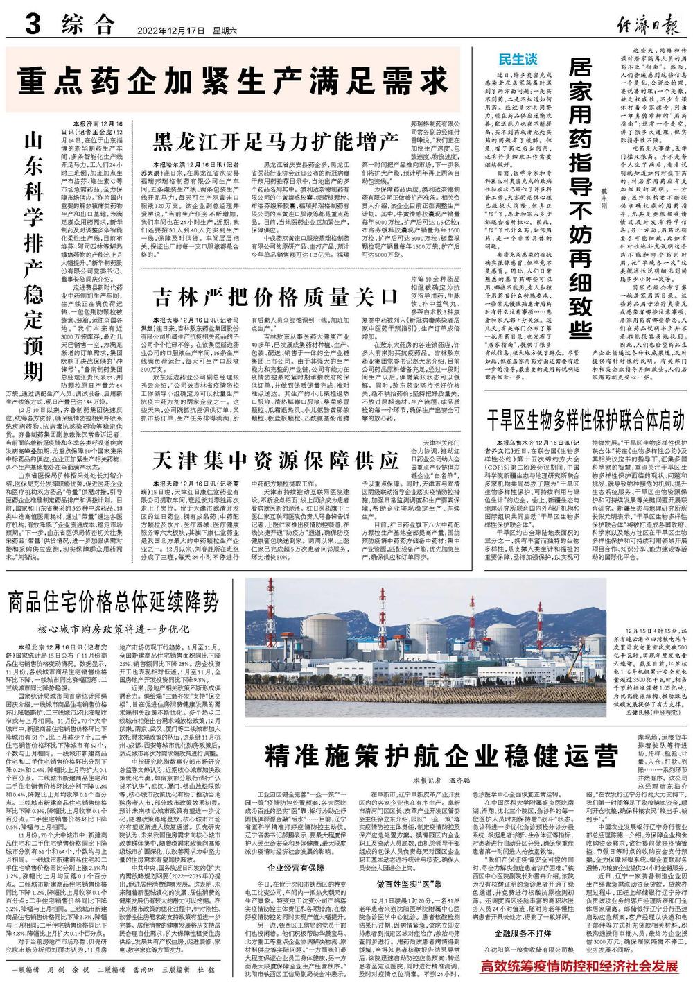 工业园区健全完善“一企一策”“一园一策”疫情防控处置预案,各大医院成为百姓的坚实“医”靠,银行为助企纾困提供源源金融“活水”……目前,辽宁省正科学精准打好疫情防控主动仗。辽宁省委书记郝鹏表示,要最大程度保护人民生命安全和身体健康,最大限度减少疫情对经济社会发展的影响。