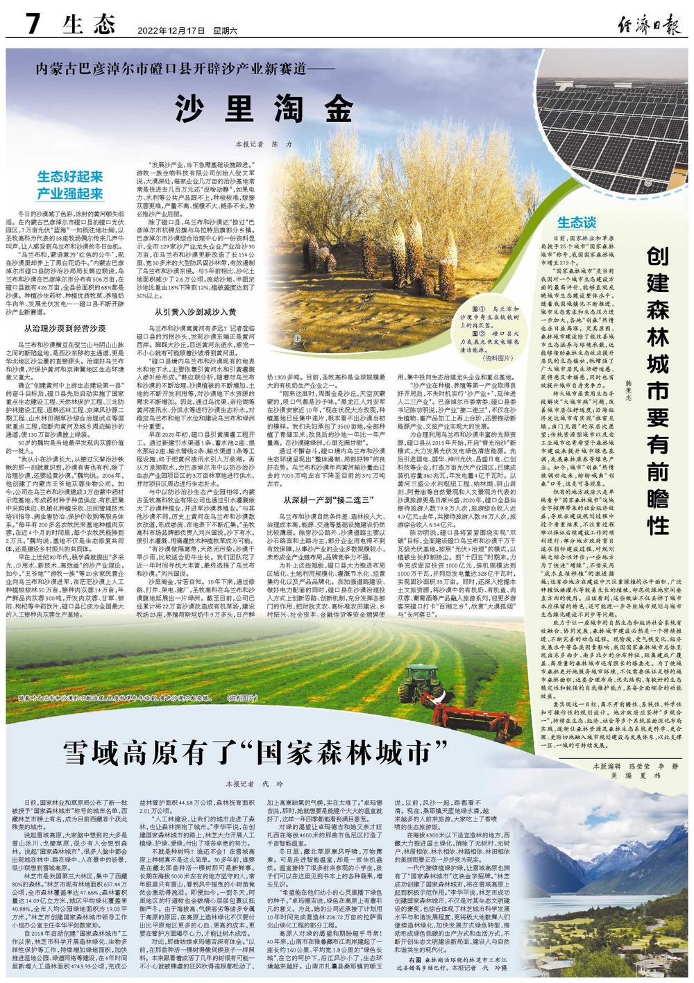 说起雪域高原,大家脑中想到的大多是雪山冰川、戈壁草原,很少有人会想到森林。说起“国家森林城市”,很多人脑中都会出现城在林中、路在绿中、人在景中的场景,很少联想到雪域高原。