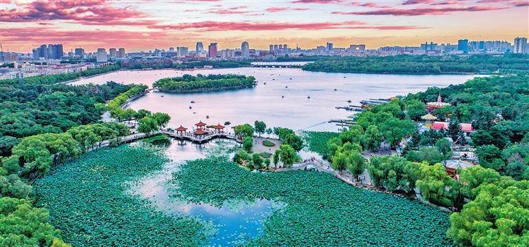 位于城区东北角的长春北湖国家湿地公园,总面积11.97平方公里。唐继东介绍说,这片区域地势低洼,工业尾水、生活污水等在此汇聚,多年来一直是城市排涝区、水灾频发区,环境质量堪忧。为此,当地投资30亿元,用了两年半时间,将其改造成一座兼具防洪、治污功能的湿地公园,在治理过程中疏通了“外河”“内湖”两大水系,实现了河湖分治、湿地修复的目标。