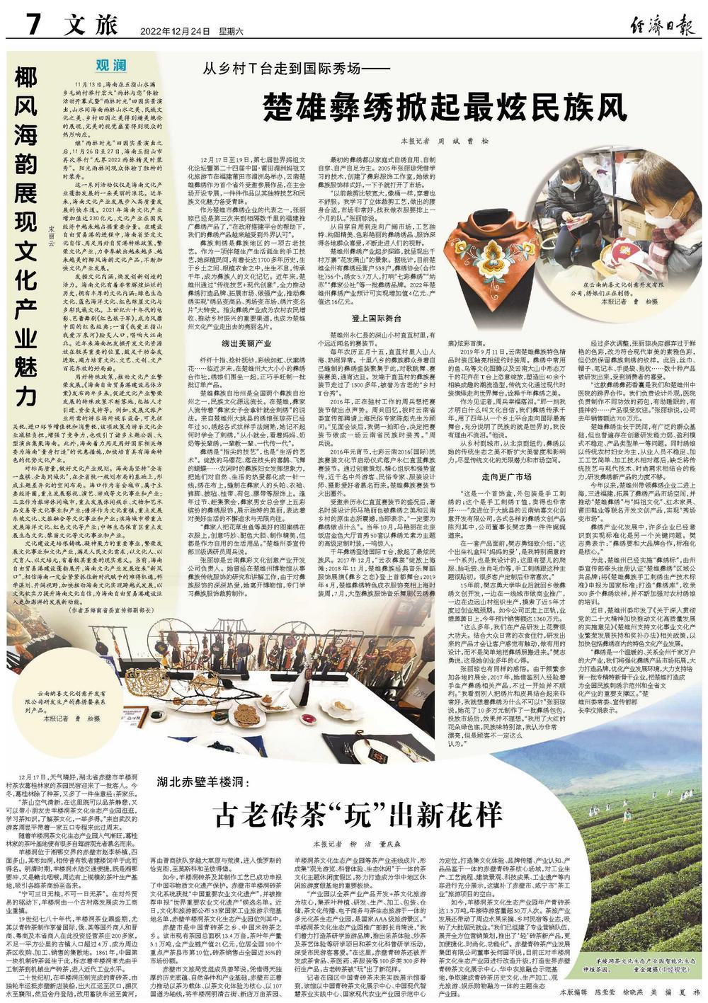 “这么多年,我们在产品研发上花费很大功夫。结合大众日常的衣食住行,研发出来的产品才会让客户感觉有触动,做有用的设计,而不是简单地把彝绣照搬进来。”樊志勇说,这是她创业多年的心得。