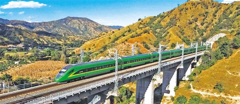右图 12月26日,C57次“绿巨人”复兴号动车组列车行驶在新成昆线上。