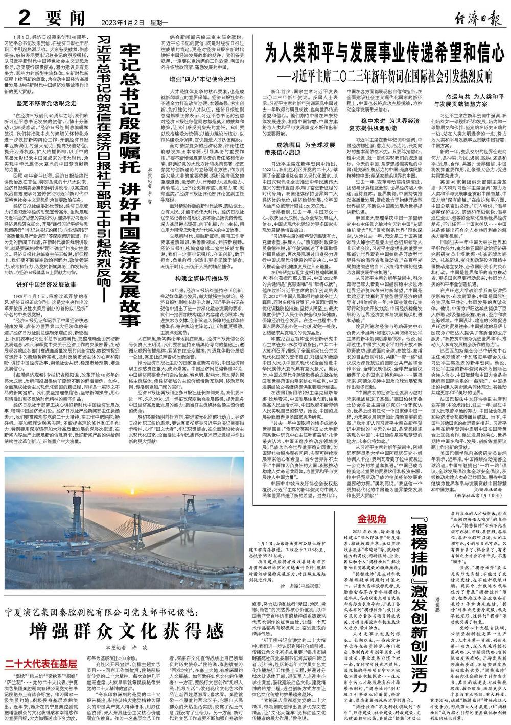 1月1日,经济日报迎来创刊40周年,习近平总书记发来贺信,在经济日报社干部职工中引起热烈反响。大家备受鼓舞、倍感振奋,纷纷表示要牢记总书记的殷殷嘱托,以习近平新时代中国特色社会主义思想为指导,忠实履行职责使命,着力建设具有竞争力、影响力的新型主流媒体,在新时代新征程上续写新的篇章,为推动中国经济高质量发展、讲好新时代中国经济发展故事作出新的更大贡献。