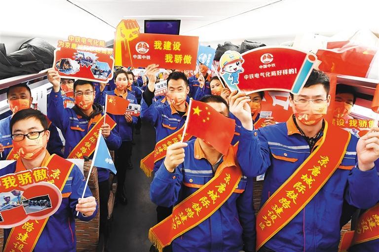 ⑤新年来临之际,北京至唐山城际铁路、北京至天津滨海新区城际铁路宝坻至北辰段同步开通运营,铁路建设者在首发列车上共庆佳节。