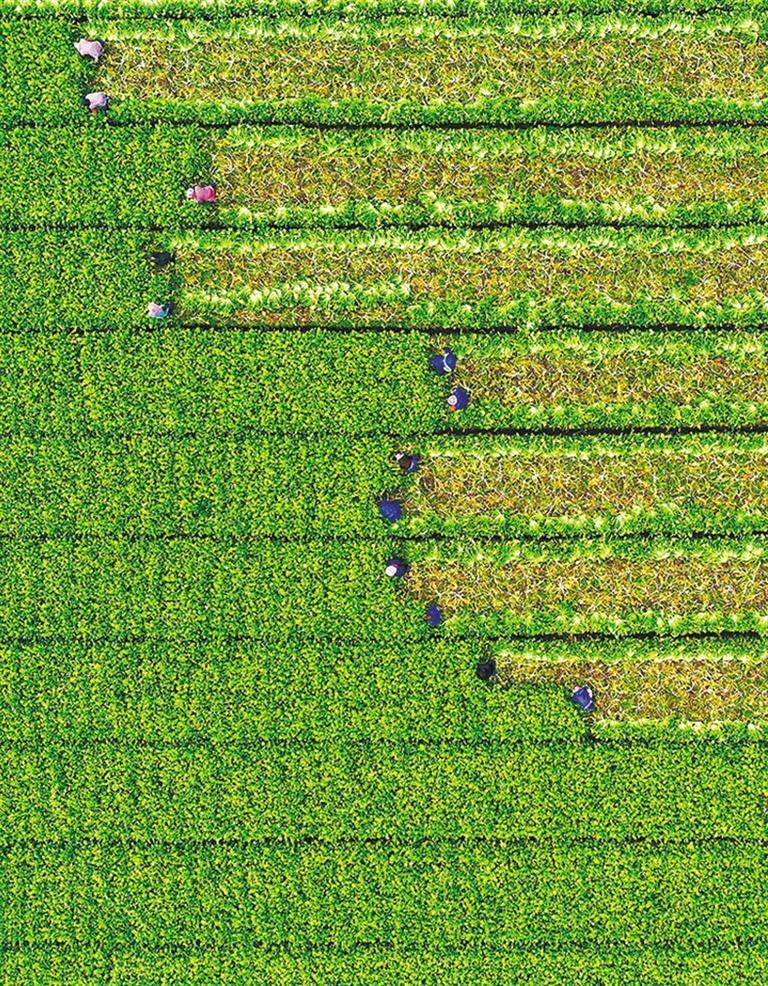 1月3日,浙江省温岭市石桥头镇杨家浦村,农民正在采收叶用芥菜下梁菜。近年来,当地通过创新农作模式,有效提高农田效益、增加农民收入。刘振清摄(中经视觉)