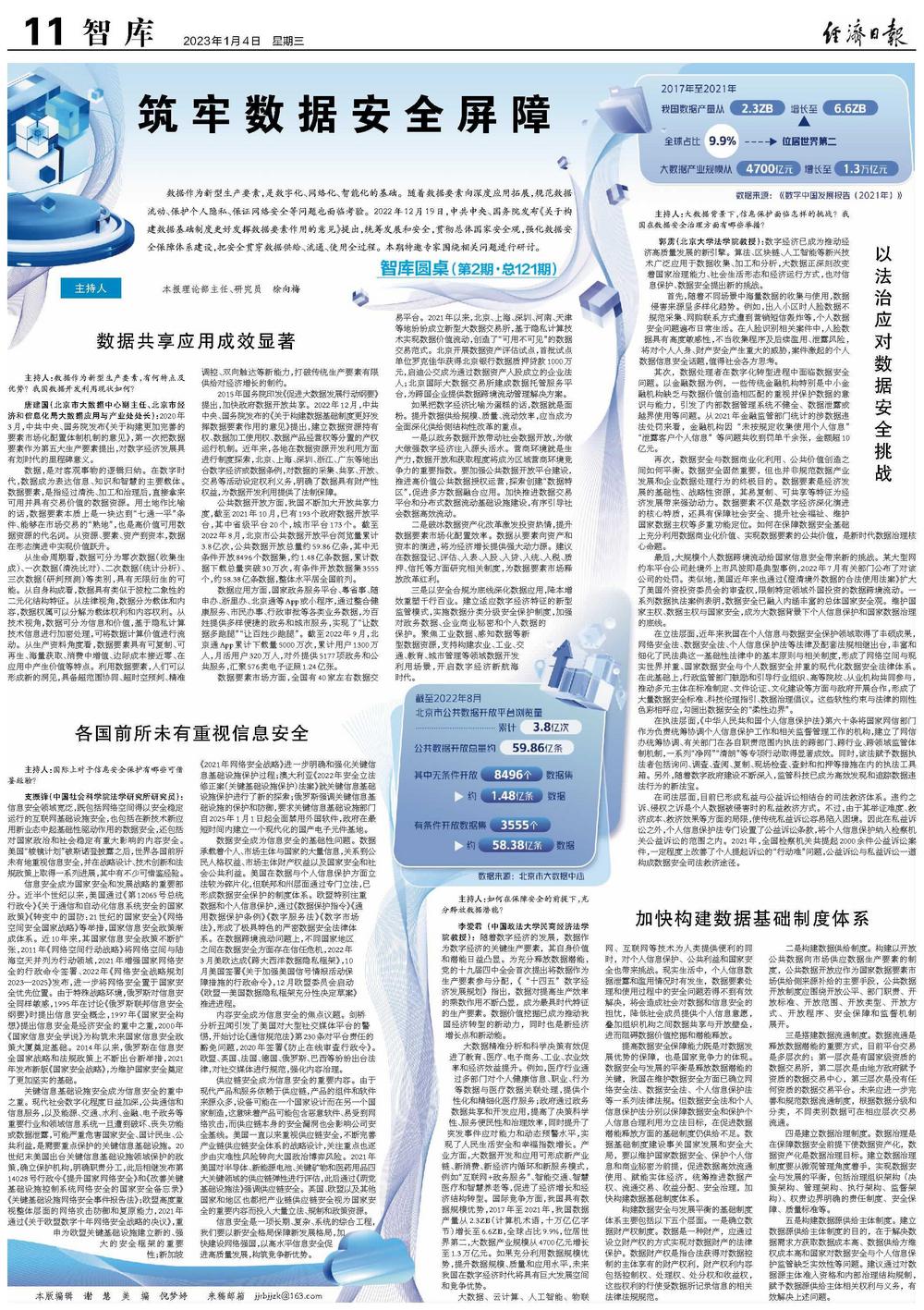 郭雳(北京大学法学院教授):数字经济已成为推动经济高质量发展的新引擎。算法、区块链、人工智能等新兴技术广泛应用于数据收集、加工和分析,大数据正深刻改变着国家治理能力、社会生活形态和经济运行方式,也对信息保护、数据安全提出新的挑战。