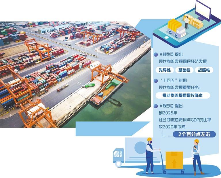 近日,《“十四五”现代物流发展规划》(以下简称《规划》)正式发布。这是我国物流领域第一个五年规划,标志着我国物流业已进入到系统整合、转型发展、功能提升的新阶段。未来,现代物流体系该怎么建,发力点在哪里?如何推进物流业增效降本?国家发展改革委日前举行专题发布会,对相关话题进行了回应。