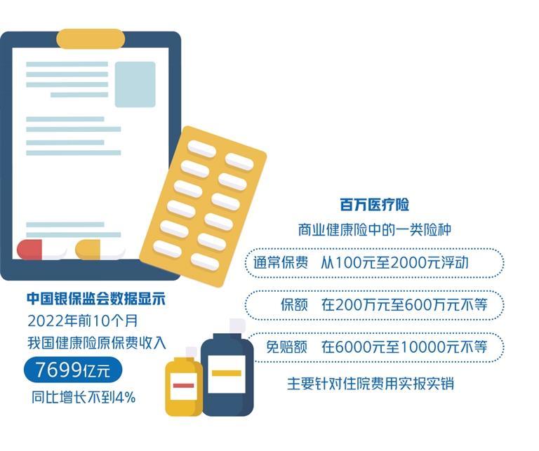 不过,在持续的高增长之后,健康险的发展势头却出现了明显放缓。来自中国银保监会的数据显示,2022年前10个月,健康险保费收入近7700亿元,同比增长已不足4%。特别是百万医疗险也已出现形态同质化、营销依靠费用比拼等瓶颈局面,无论是覆盖规模还是保障责任、服务内容等方面,都亟待进一步的突破。