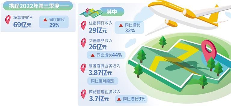 “净营业收入69亿元,同比增长29%,净利润2.45亿元,经调整EBITDA(税息折旧及摊销前利润)14亿元,同比增长164%。”这是携程集团日前交出的2022年第三季度成绩单。在经历了上半年的市场“寒冬”后,我国2022年第三季度暑期旅游市场触底反弹,海外旅游市场复苏,携程也迎来业绩回暖。