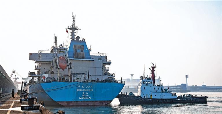1月4日,船舶在黄骅港装运电煤。2022年黄骅港完成电煤装船量20515.8万吨,实现了连续3年突破2亿吨大关,发挥了能源供应“压舱石”作用。在迎峰度夏、迎峰度冬关键时期,有力保障了长三角、珠三角等地电煤供应。傅新春摄(中经视觉)