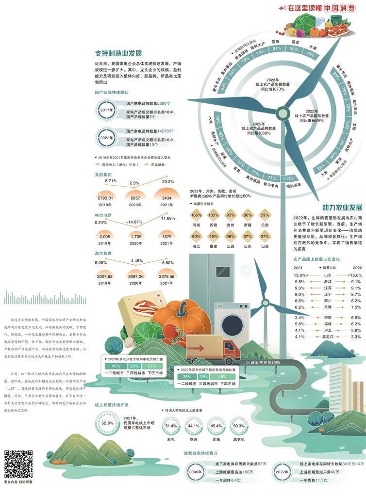 以家电产业为例,尽管已进入存量市场阶段,但整个行业在新消费潮流的引导下,依然坚持创新,不断拓展产品品类,打通了从覆盖更多消费者使用需求到提供更高价值产品和服务的升级路径。同时,相关企业充分发挥数字化供应链的能力,推动电器行业持续降本增效,弥合城乡差异,提升渠道效率。目前,家电消费已经成为中国制造业高质量发展的重要推动力。
