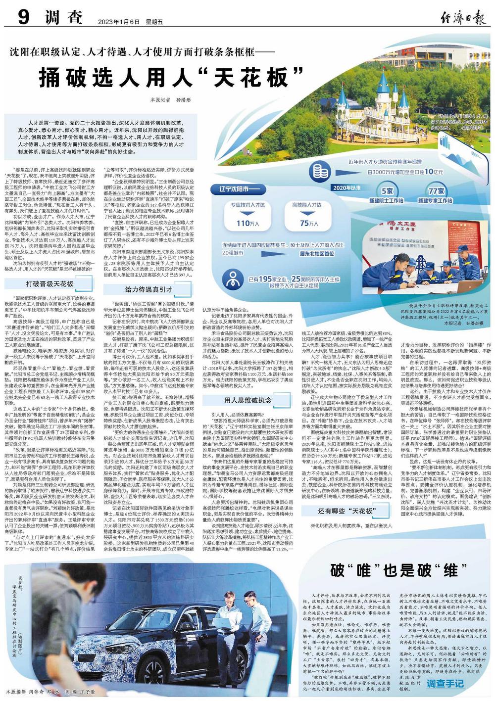 “高端人才在哪里都是稀缺资源,而智慧创造力不分地域边界。沈阳以开放的心态拥抱人才,不唯所有,但求所用。柔性用人也包括走出去,鼓励企业、科研院所在国内外科技高地设立研发中心。在新领域、新赛道凝聚战略科技力量,就是沈阳吸引高端人才的磁场密码。”王义东说。