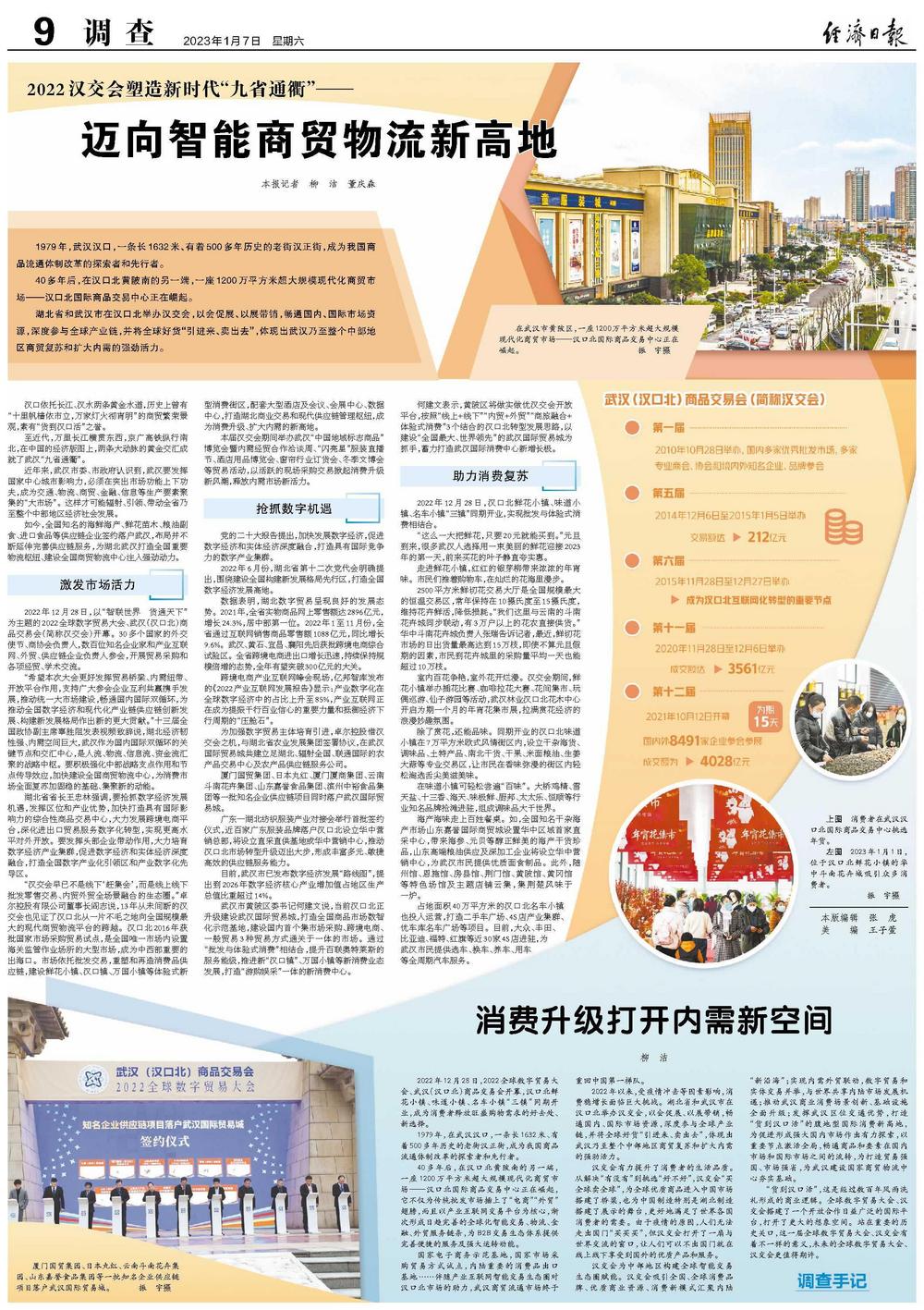 2022年12月28日,以“智联世界 货通天下”为主题的2022全球数字贸易大会、武汉(汉口北)商品交易会(简称汉交会)开幕。30多个国家的外交使节、商协会负责人,数百位知名企业家和产业互联网、外贸、供应链企业负责人参会,开展贸易采购和各项经贸、学术交流。