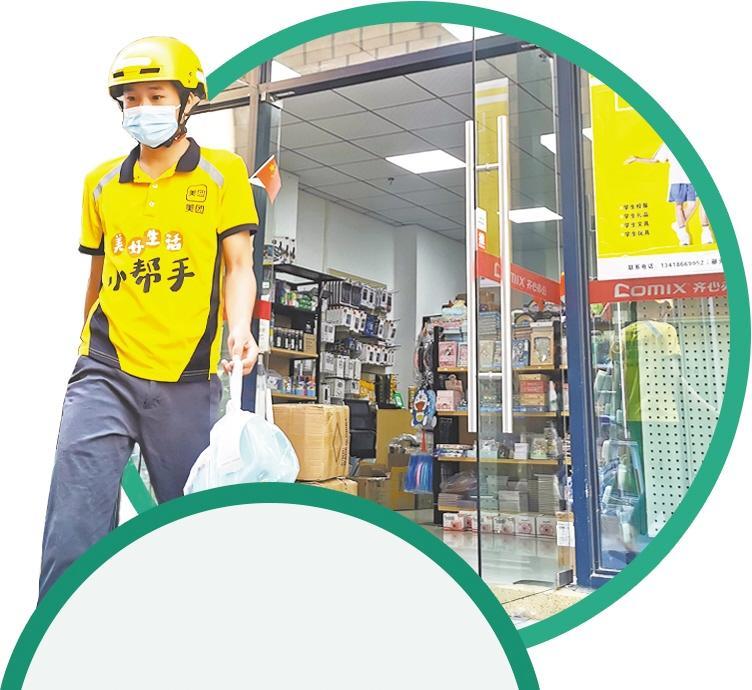 陈瑜总是和店员一起拣货、打包,骑电动车的外卖员络绎不绝地来到店里,取走包裹好的商品后陆续离开。超市门店位于居民区内,从传统零售角度看,位置并不理想,陈瑜却不在意。在她看来,网上消费已经深深融入深圳市民的日常生活。陈瑜说:“20年前买百货要去商超实体店,亲自挑选;10年前网上购物一键下单,3天到5天送货上门;而今天,下单半小时收到骑手送上门的商品,享受24小时全天候服务。”