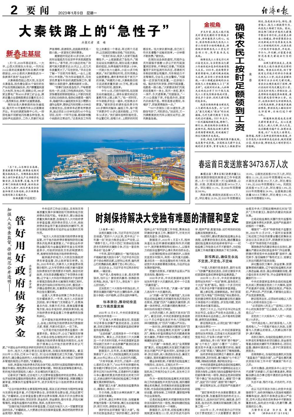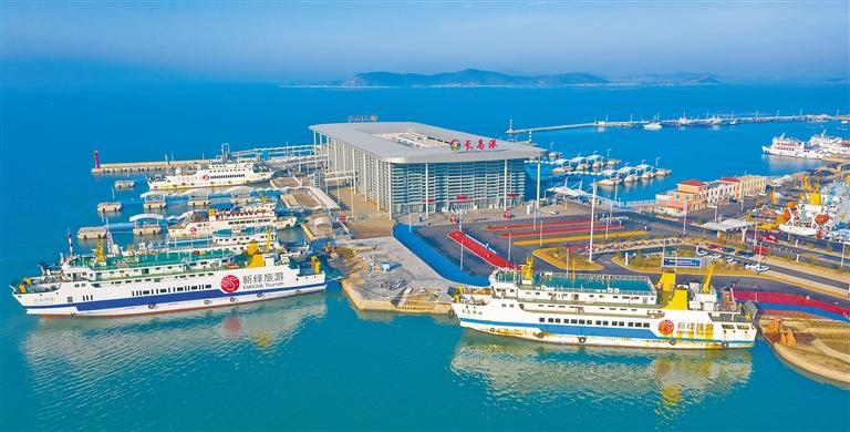1月7日,山东烟台长岛港,客滚船整齐停靠,保障春运期间蓬长航线运力。为确保春运期间海上出行和重要生产生活物资运输安全,长岛海事、交通、电力等多部门积极谋划部署,组织执法人员深入港口、码头开展安全检查和海空立体巡航,全力保障春运期间海上交通安全。