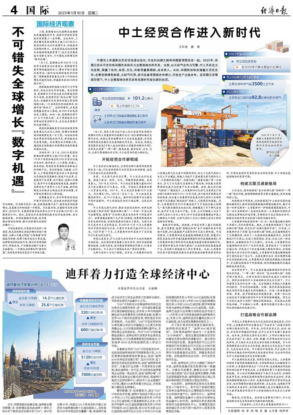 1月6日,国家主席习近平在人民大会堂同来华进行国事访问的土库曼斯坦总统谢尔达尔·别尔德穆哈梅多夫举行会谈,两国元首全面擘画中土关系发展蓝图,共同宣布将两国关系提升为全面战略伙伴关系。会谈后,两国元首签署并发表《中华人民共和国和土库曼斯坦联合声明》,共同见证签署“一带一路”、绿色发展、数字经济、卫生、文化、天然气等领域合作文件,中土经贸合作进入新时代。
