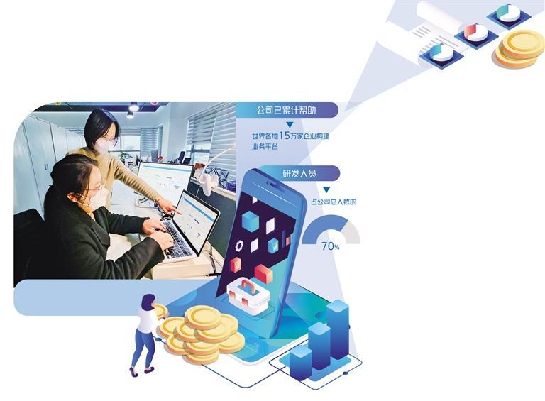 “我们抓住了低代码开发的机遇。”爱湃斯公司联合创始人、CEO胡柏介绍,低代码听起来陌生,其实早已在企业数字化转型中扮演重要角色。简单而言,低代码是一种只需用很少甚至不需要代码即可快速开发系统,并实现快速配置和部署的技术工具。比如,很多小程序和APP开发工具都是低代码产品,编辑者不需要掌握编程就可以自主构建业务应用,一些常见的手机问卷调查、打卡签到都是如此。在金融、工业、政务等领域,低代码能够减少企业开发者的成本和操作门槛,快速提供数字化业务的交付能力,帮助企业用好低代码技术,正是爱湃斯公司的核心竞争力。