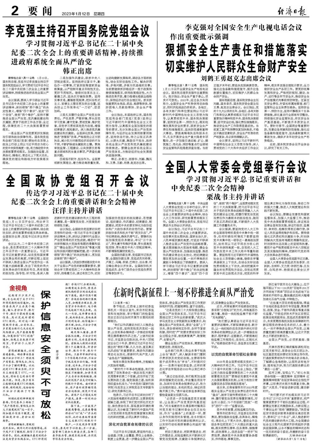 会议要求,坚持以习近平新时代中国特色社会主义思想为指导,深入贯彻党的二十大和中央经济工作会议精神,落实李克强总理批示要求,全力做好安全生产各项工作。要更好统筹发展和安全,严格把好规划、建设、生产、运行等各环节安全关,推动安全生产治理模式向事前预防转型。压紧压实安全责任,拧紧扣牢属地管理、部门监管和企业主体责任链条。坚持安全第一、预防为主,坚持不懈落实十五条硬措施,深化重点行业领域专项整治,持续强化安全监管执法,夯实安全生产基层基础,不断提升本质安全水平。要针对春节、全国两会等重要时段,完善应急预案和防范措施,强化应急备勤和值班值守,坚决遏制重特大事故发生,确保岁末年初安全生产形势稳定。