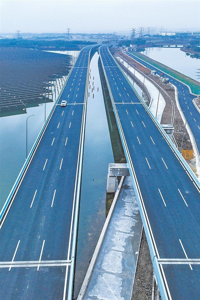 一月十二日,浙江省宁波市镇海区的杭甬高速复线澥浦互通连接线部分建成通车。项目建成后将有力促进宁波与杭州、上海间的快速通达。胡学军摄(中经视觉)