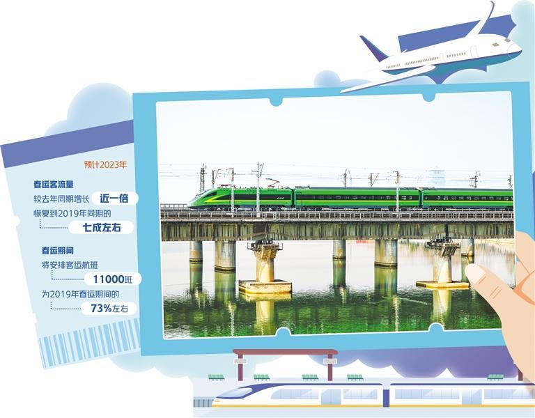 2023年春运首周,公路、铁路、水路、民航客运量均呈现恢复性增长。交通运输部日前表示,预计今年春运客流量会大幅增加,较去年同期增长近一倍,恢复到2019年同期的七成左右。